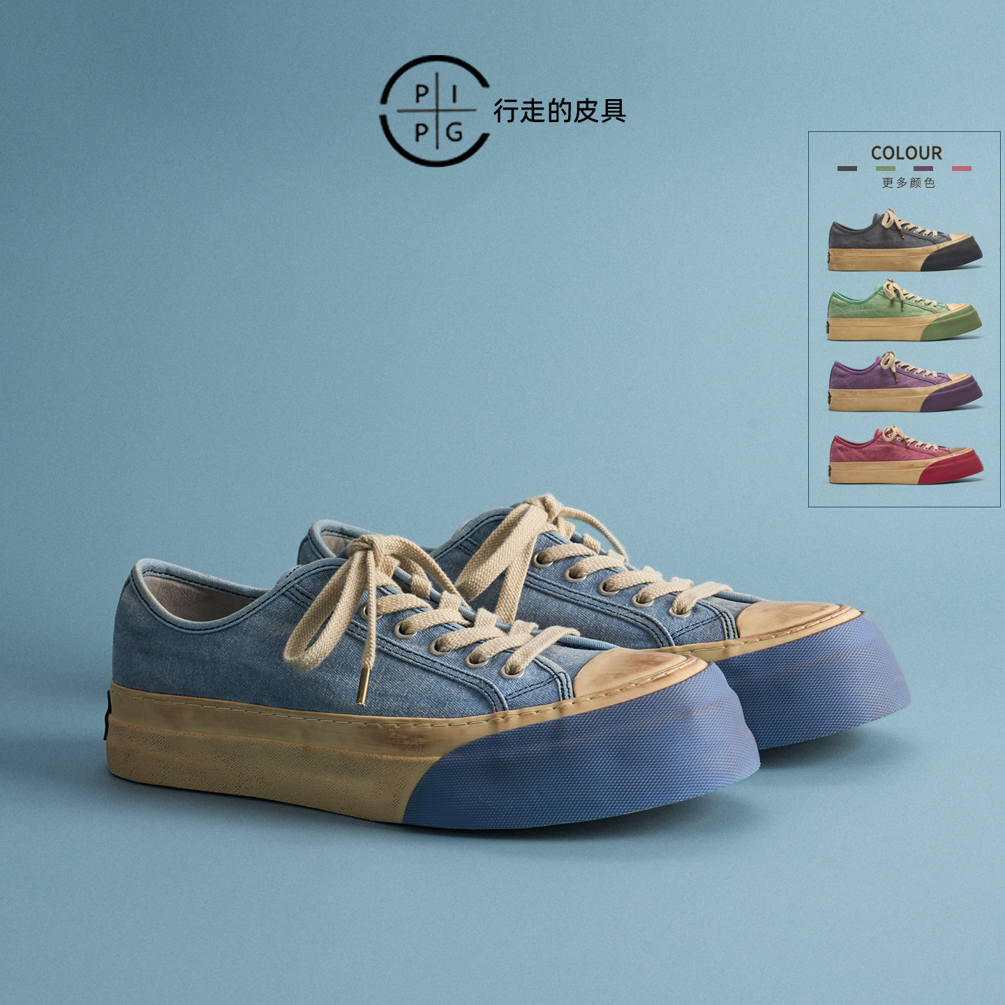 PIPG复古擦色做旧水洗帆布鞋 男女款 厚底日系硫化鞋透气板鞋2026