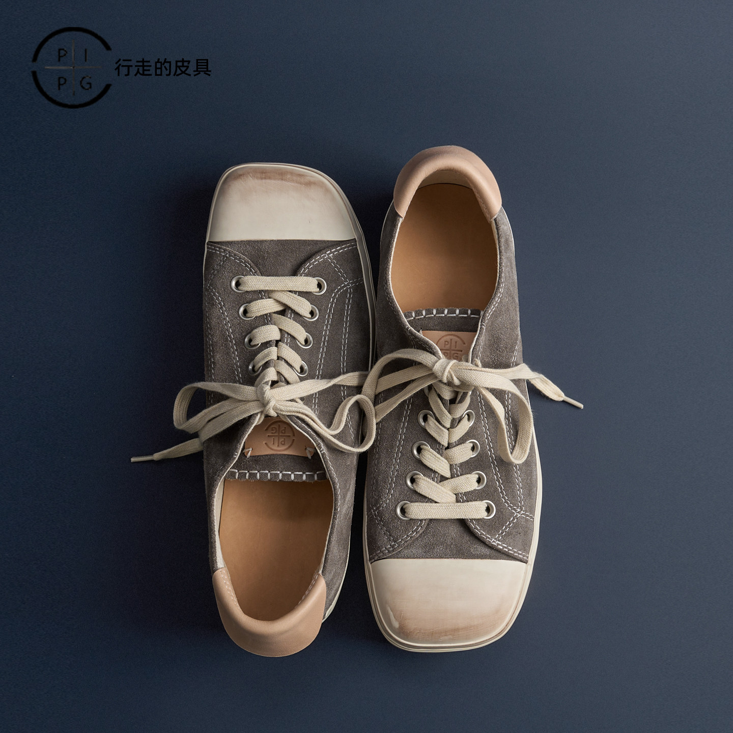 PIPG复古水洗翻毛皮帆布鞋 男女款 方头做旧擦色透气休闲板鞋2026