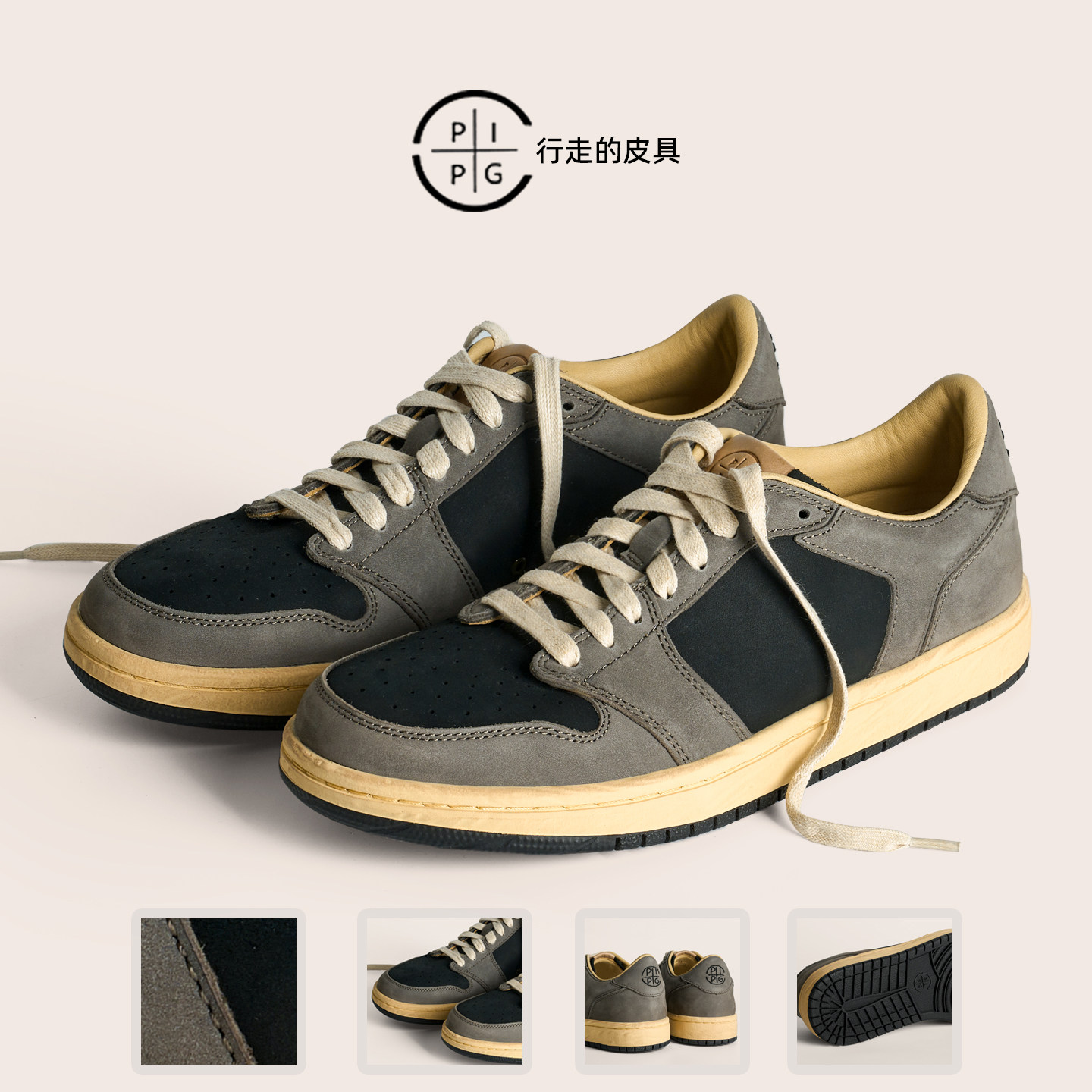 PIPG男女款复古运动休闲板鞋 头层牛真皮厚底做旧擦色手工鞋2026