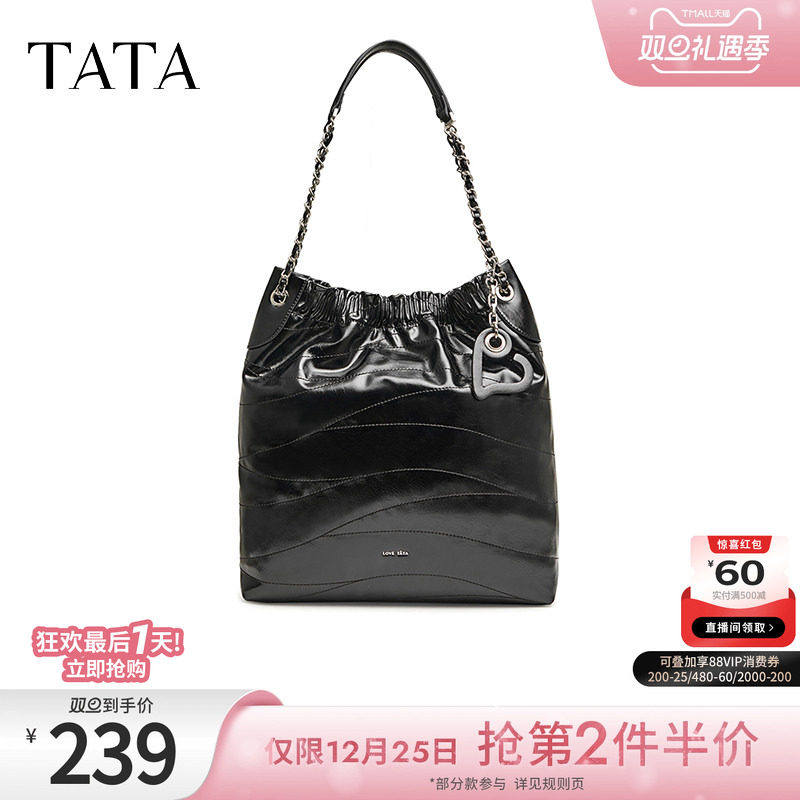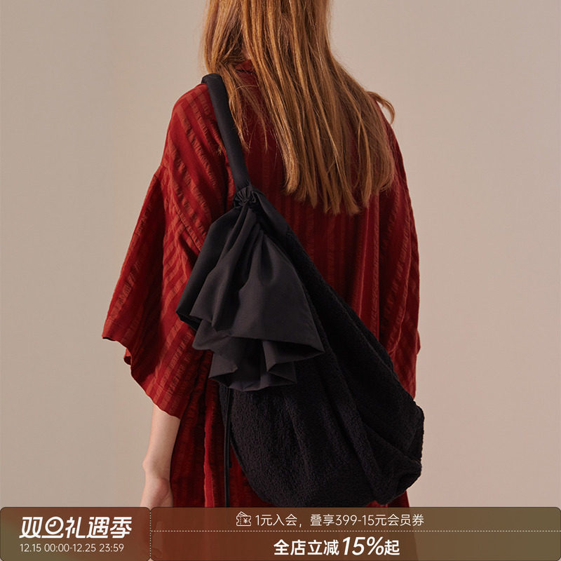 - 山水集秋冬新款水桶包流苏女包单肩斜挎包牛皮复古水桶包简约百搭