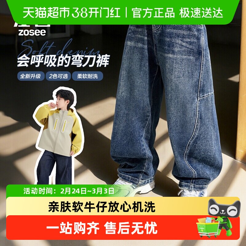 小象汉姆童装男童牛仔裤儿童春春款裤子2026新款中大童春装弯刀裤