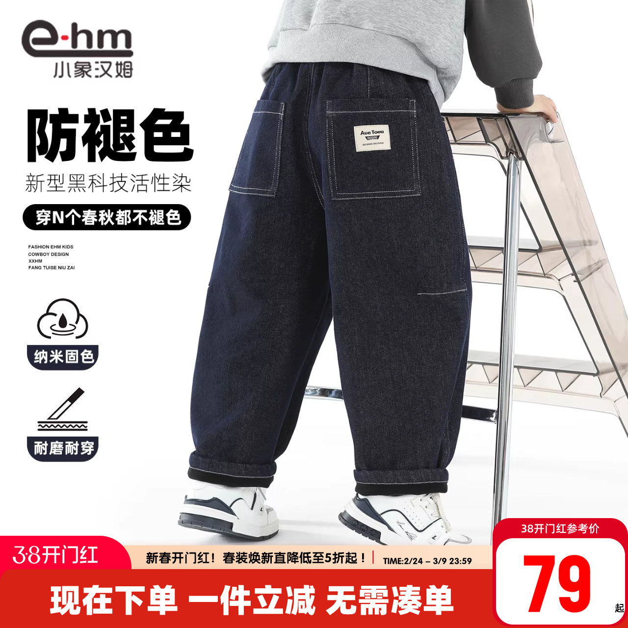 小象汉姆童装男童春秋牛仔裤儿童防褪色裤子2026春装新款男孩长裤