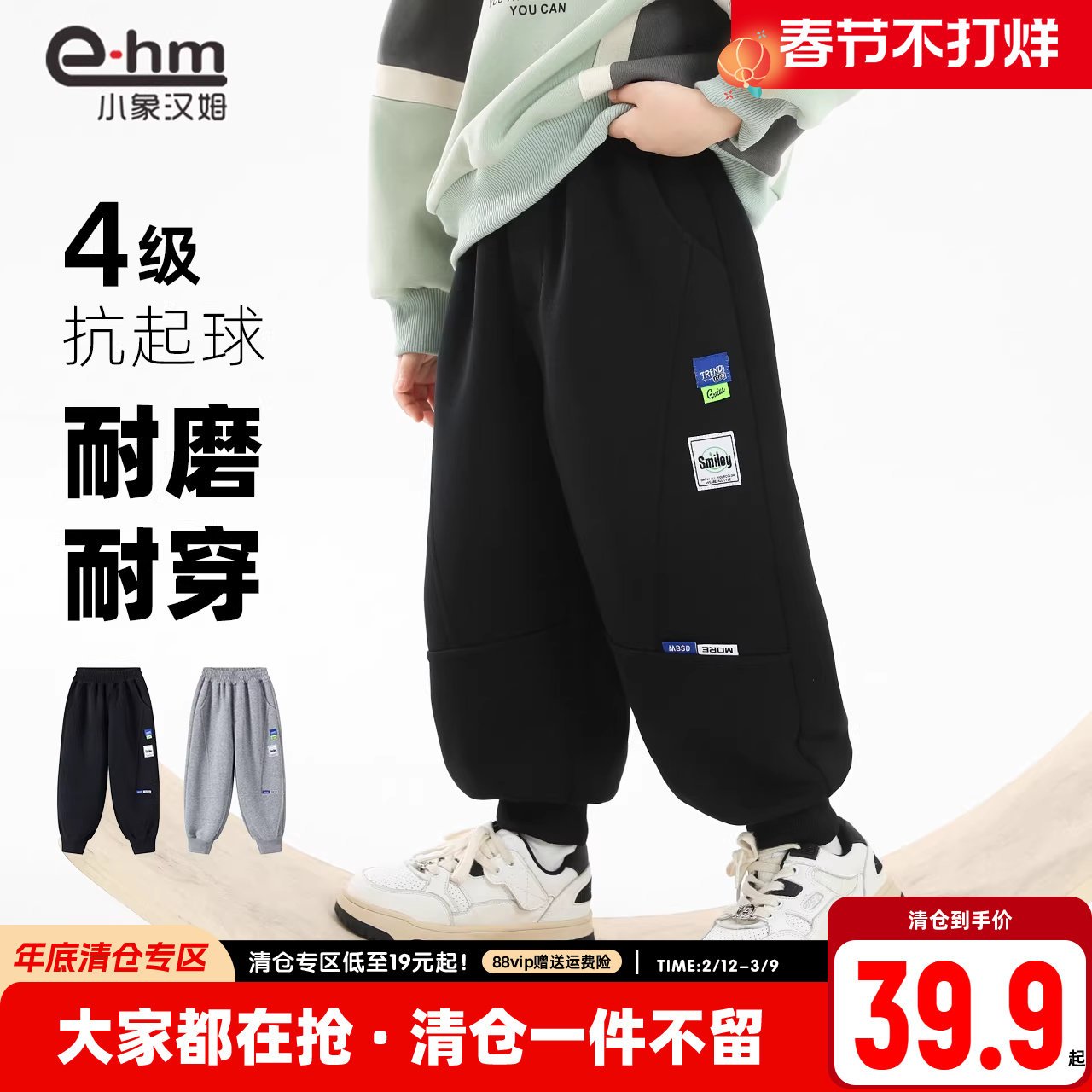 小象汉姆男童运动裤春秋儿童休闲裤子宽松2026春装新款男孩大童