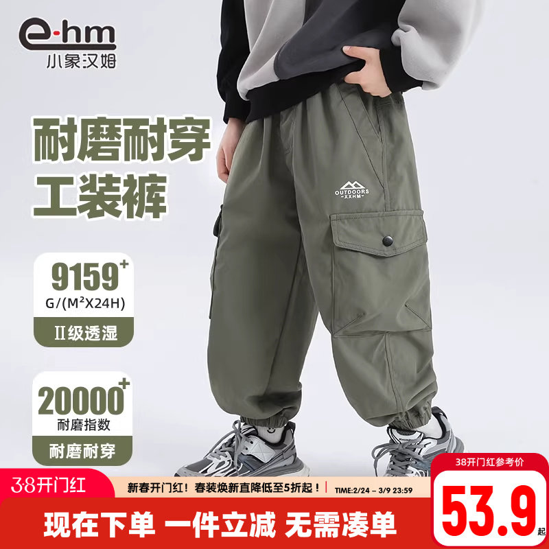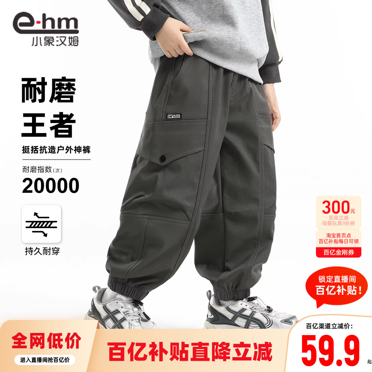 小象汉姆童装男童防水工装裤耐磨春秋长裤儿童休闲裤2026春装新款
