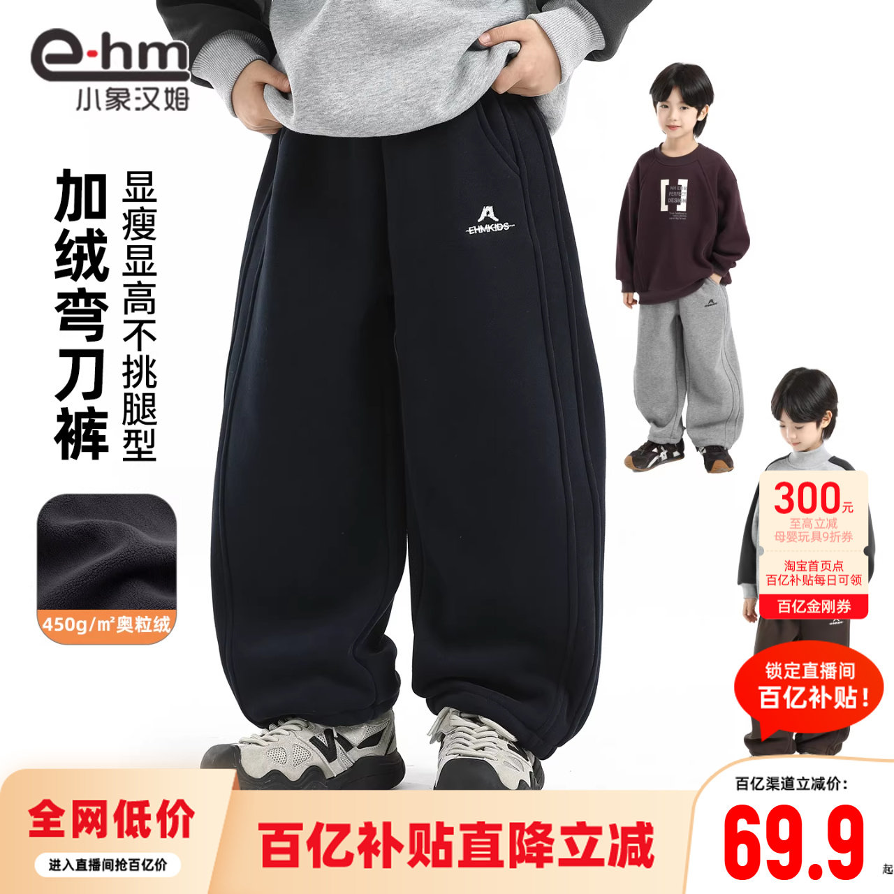 小象汉姆童装男童春秋运动裤儿童弯刀裤2026春装新款男孩宽松裤子