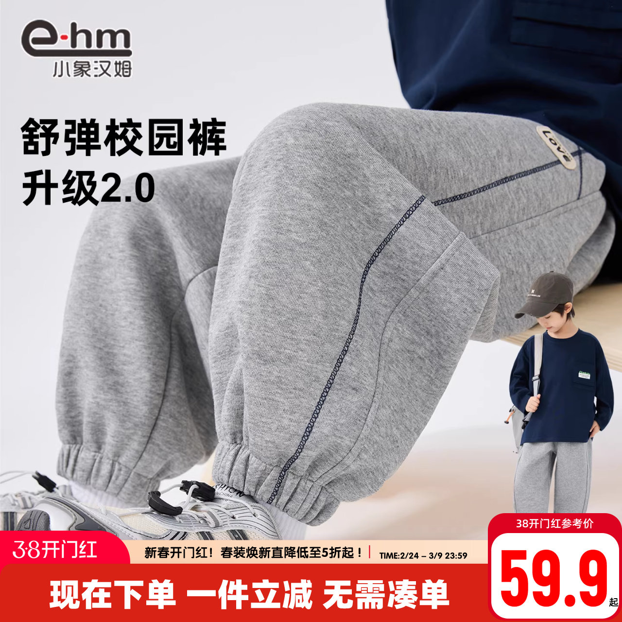 小象汉姆童装男童春秋运动裤儿童春装舒适长裤2026新款男孩校服裤