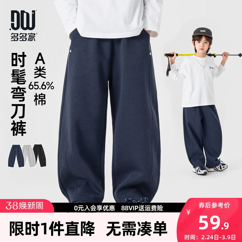 多多家男童卫裤弯刀裤2026春装新款春秋季儿童中大童简约百搭裤子