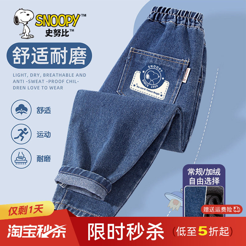 史努比童装男童裤子春新款2026新款春装长裤男孩休闲裤儿童牛仔裤