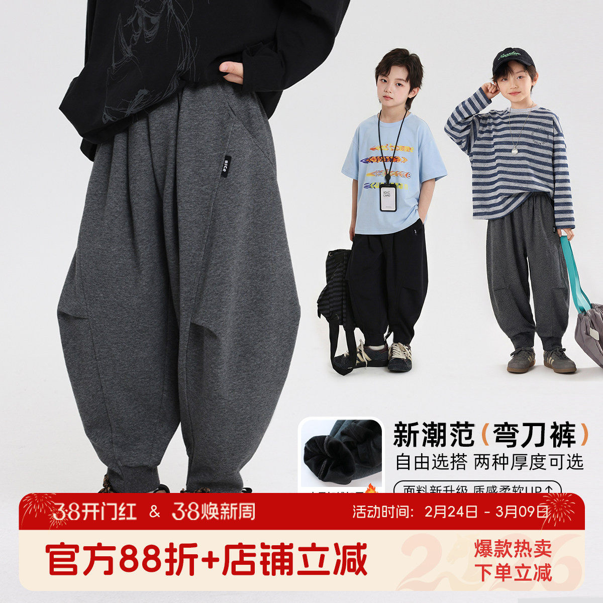 布丁哈鲁童装春装男童宽松裤子弯刀裤卫裤儿童休闲束脚裤潮酷加绒