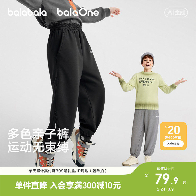 巴拉巴拉童装儿童裤子男女童长裤宝宝2026新款春装亲子休闲运动裤