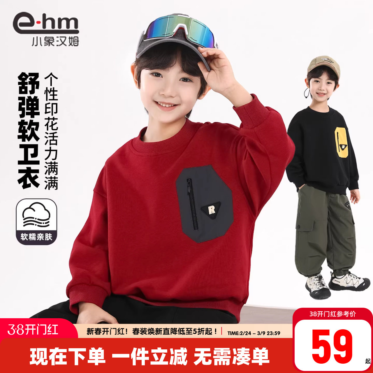 小象汉姆童装男童卫衣2026新款春装儿童红色新年拜年服男孩上衣