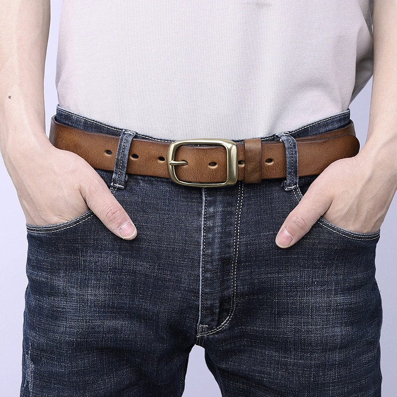 3.3褶皱款 腰带男潮复古纯牛皮牛仔皮带男学生真皮针扣百搭女通用