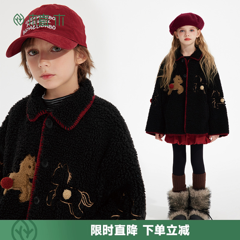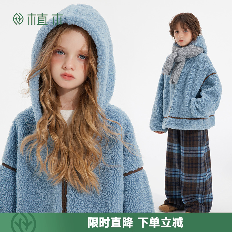 植木童装 儿童外套2025秋冬新款中大童仿羊羔毛外套男童女童外套