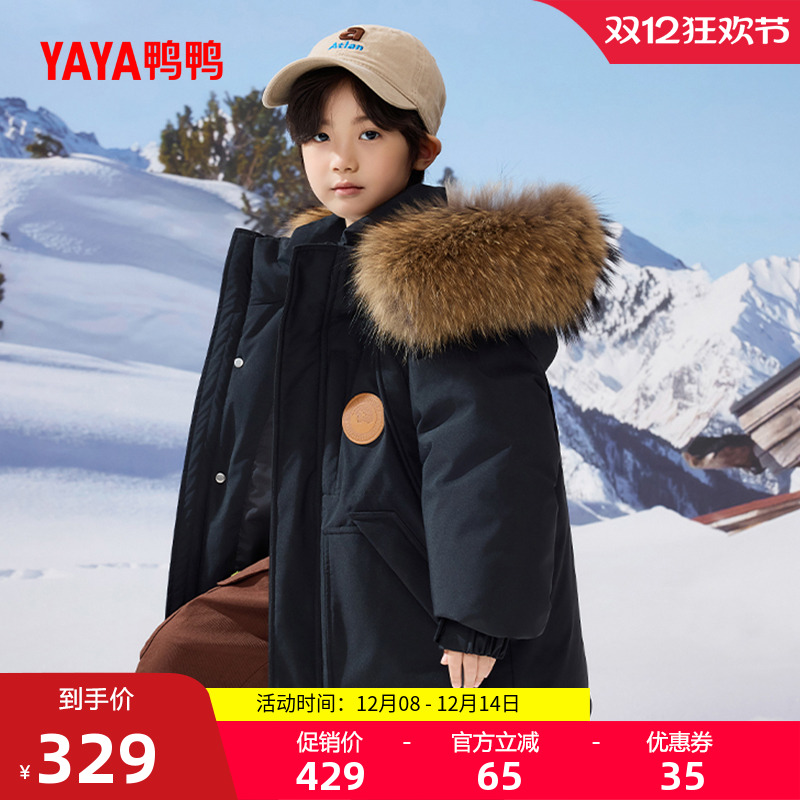 鸭鸭中大童羽绒服冰壳2025年秋冬季男童女童过膝中长款保暖外套HY