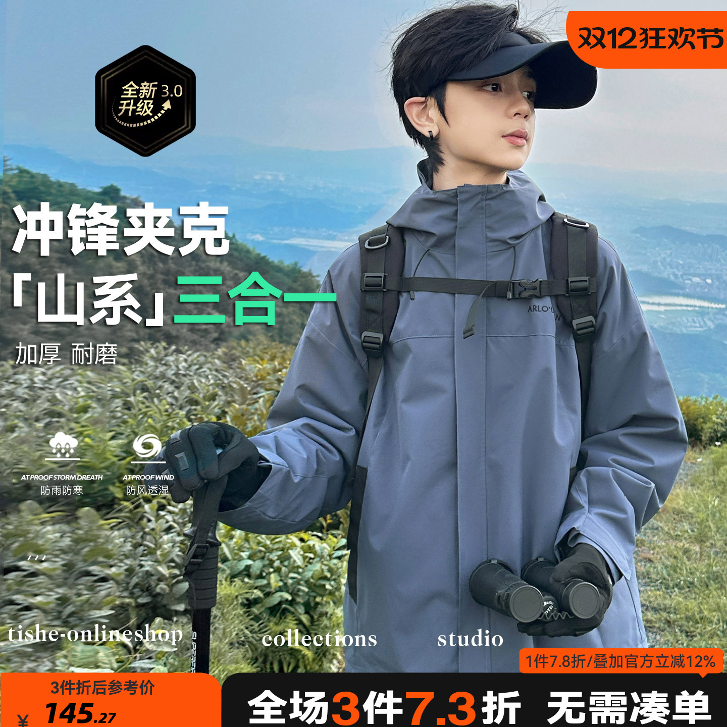男童冲锋衣三合一外套秋冬款2025新款中大童防水保暖可拆卸登山服