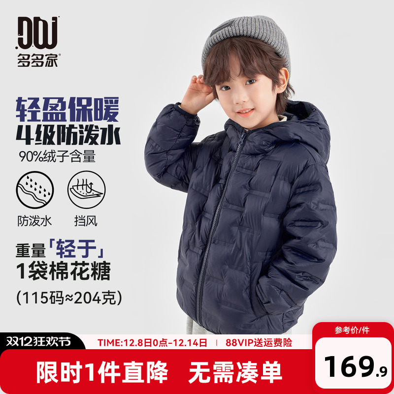 多多家男童轻薄羽绒服防泼水2025冬装新款秋冬儿童中大童连帽外套