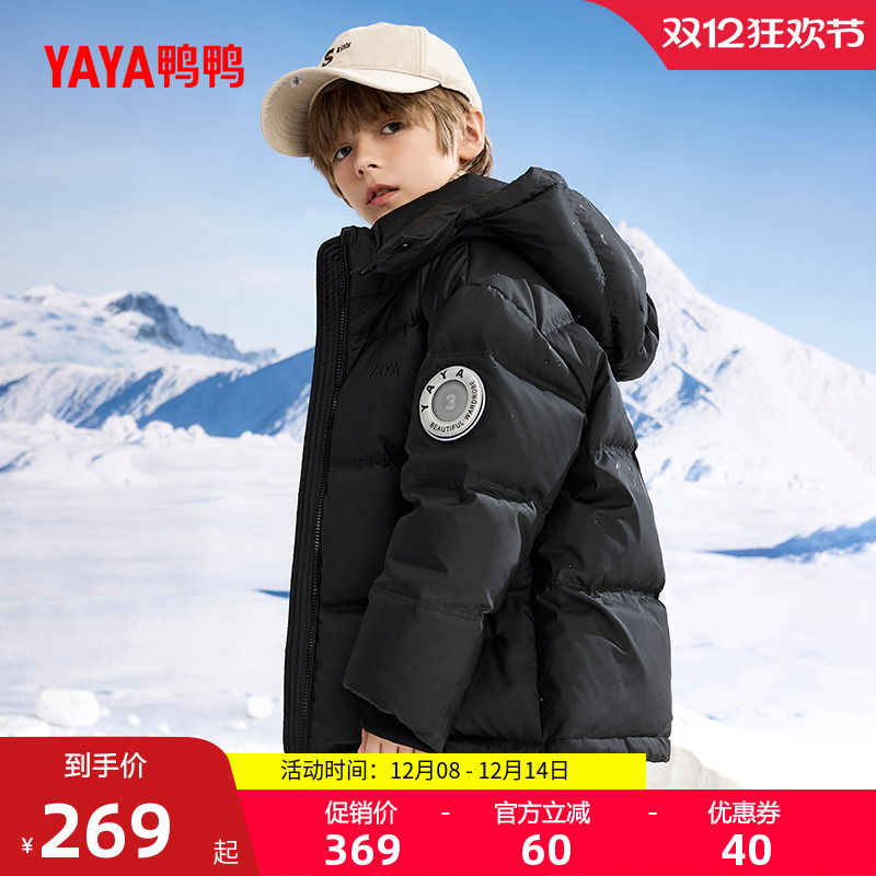鸭鸭男童羽绒服2025年秋冬新款短款休闲加厚儿童连帽外套中大童HR