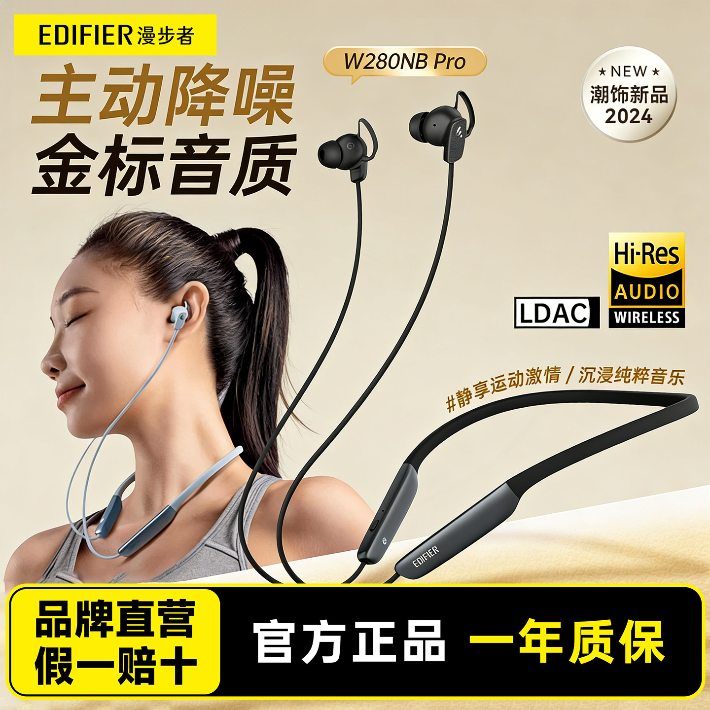 Edifier/漫步者 W280NB Pro颈挂脖式无线蓝牙耳机降噪入耳式运动