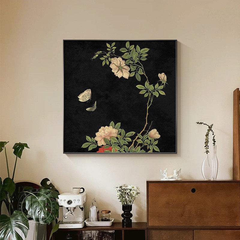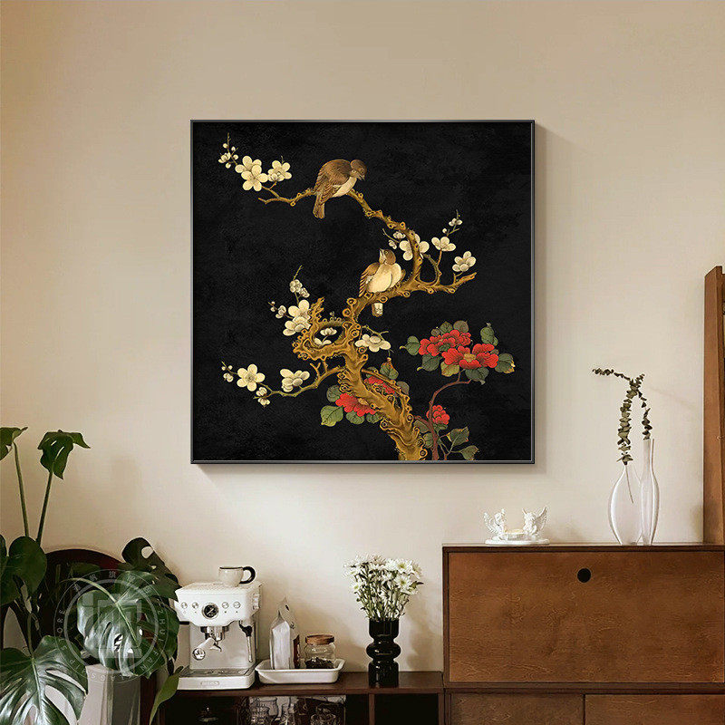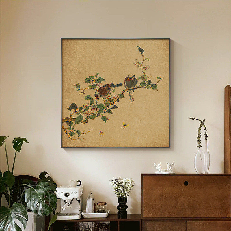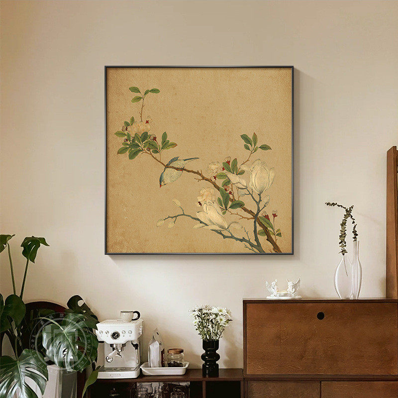 中古风沙发挂画装饰画客餐厅新中式玄关摆件宋代美学后壁法式复古