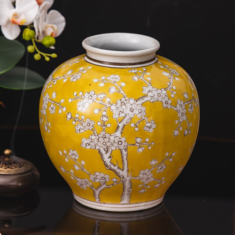 速发黄色陶瓷花瓶插花芍药牡丹客厅青花瓷新中式玄关摆件别墅装饰