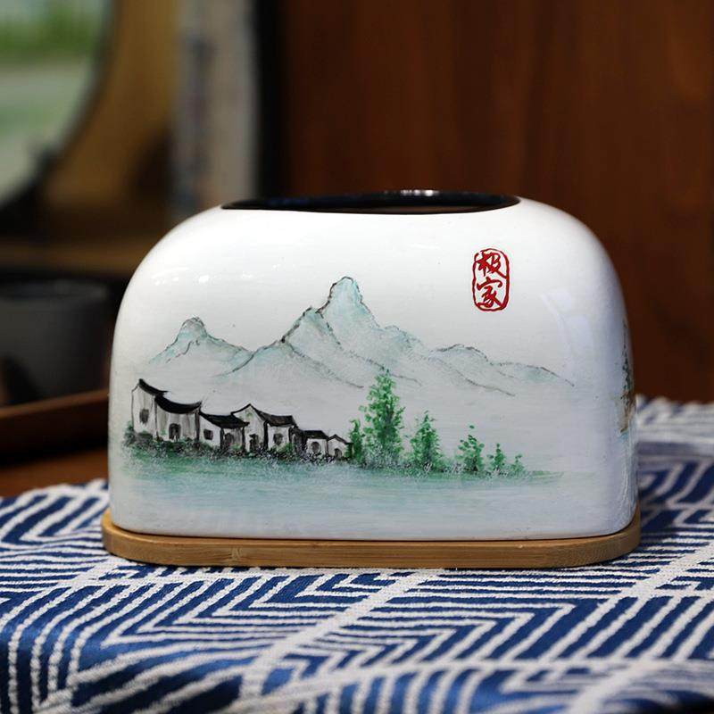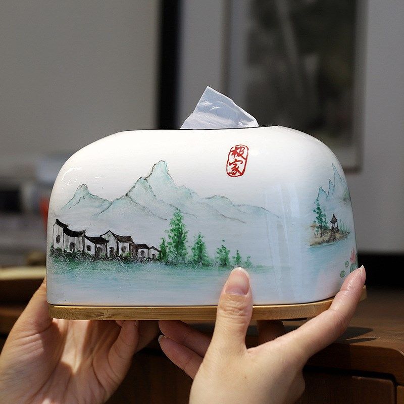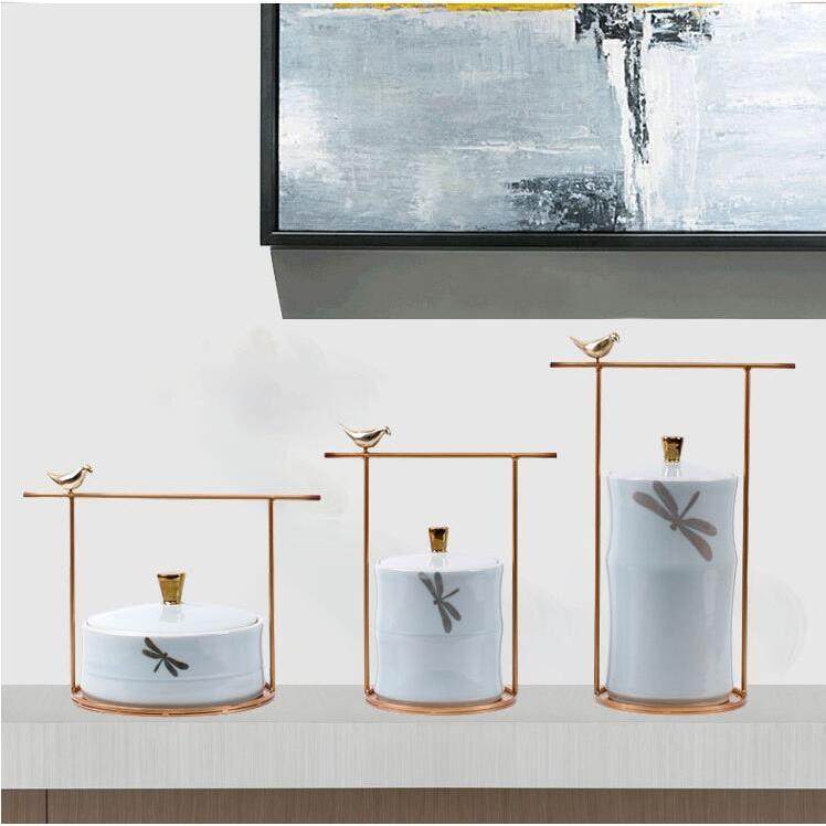 中式玄关摆件样板房轻奢陶瓷软装饰品新中式客厅茶几卧室储物摆设