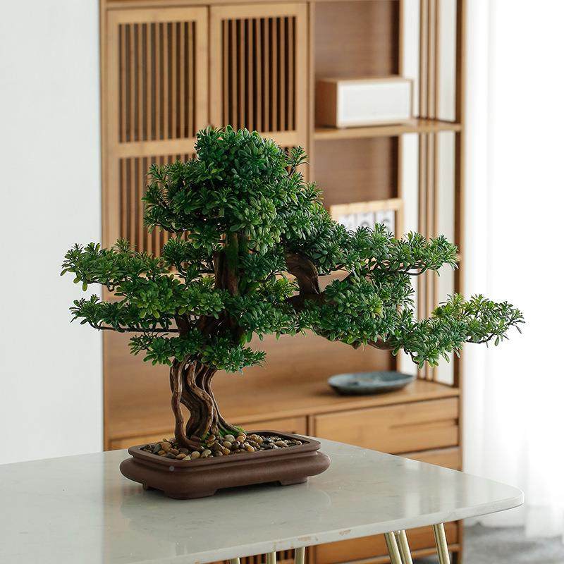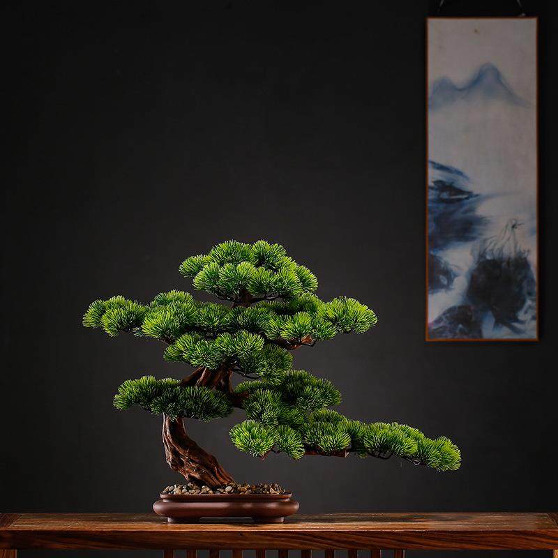 新中式玄关摆件仿真迎客松桌面直播间装饰品别墅酒店假树盆景室内