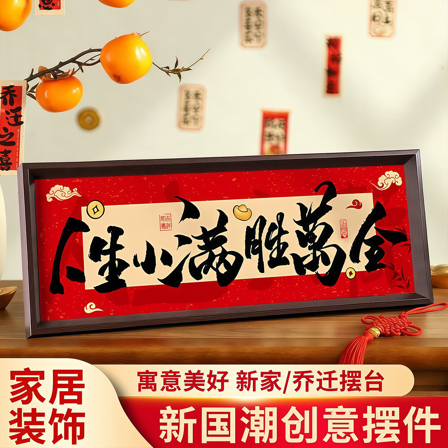 新中式字画书法木制相框玄关入户摆件客厅书房桌面高颜值新年装饰