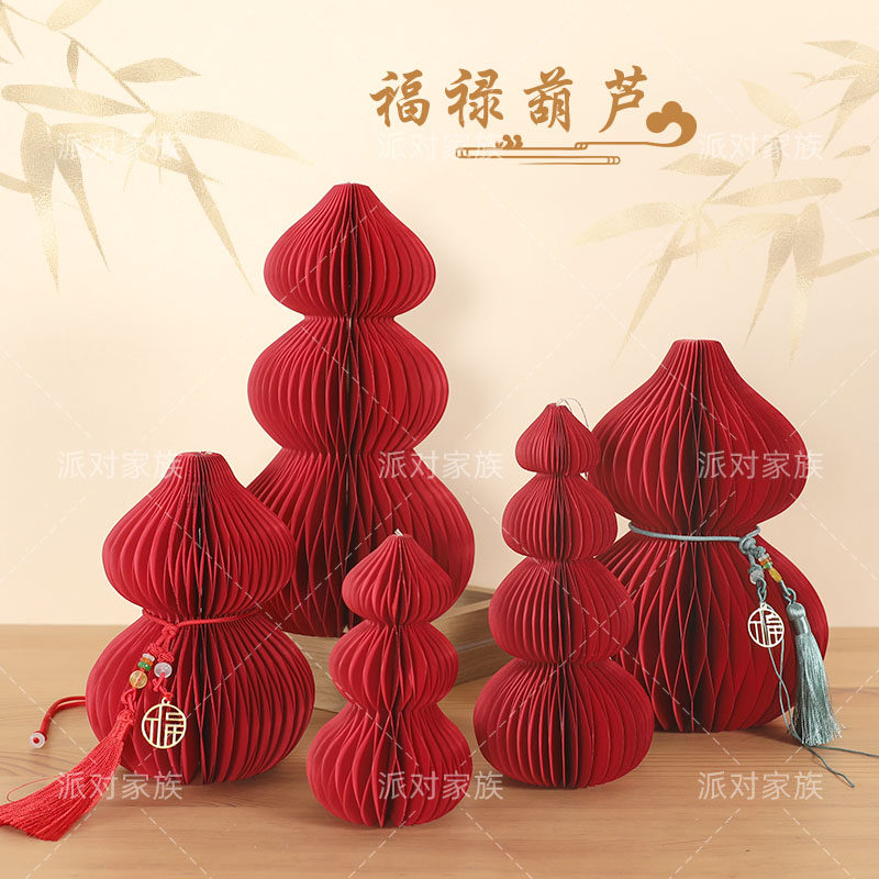 2026马年新年商场珠宝店装饰品折叠彩色纸葫芦红色中式玄关摆件