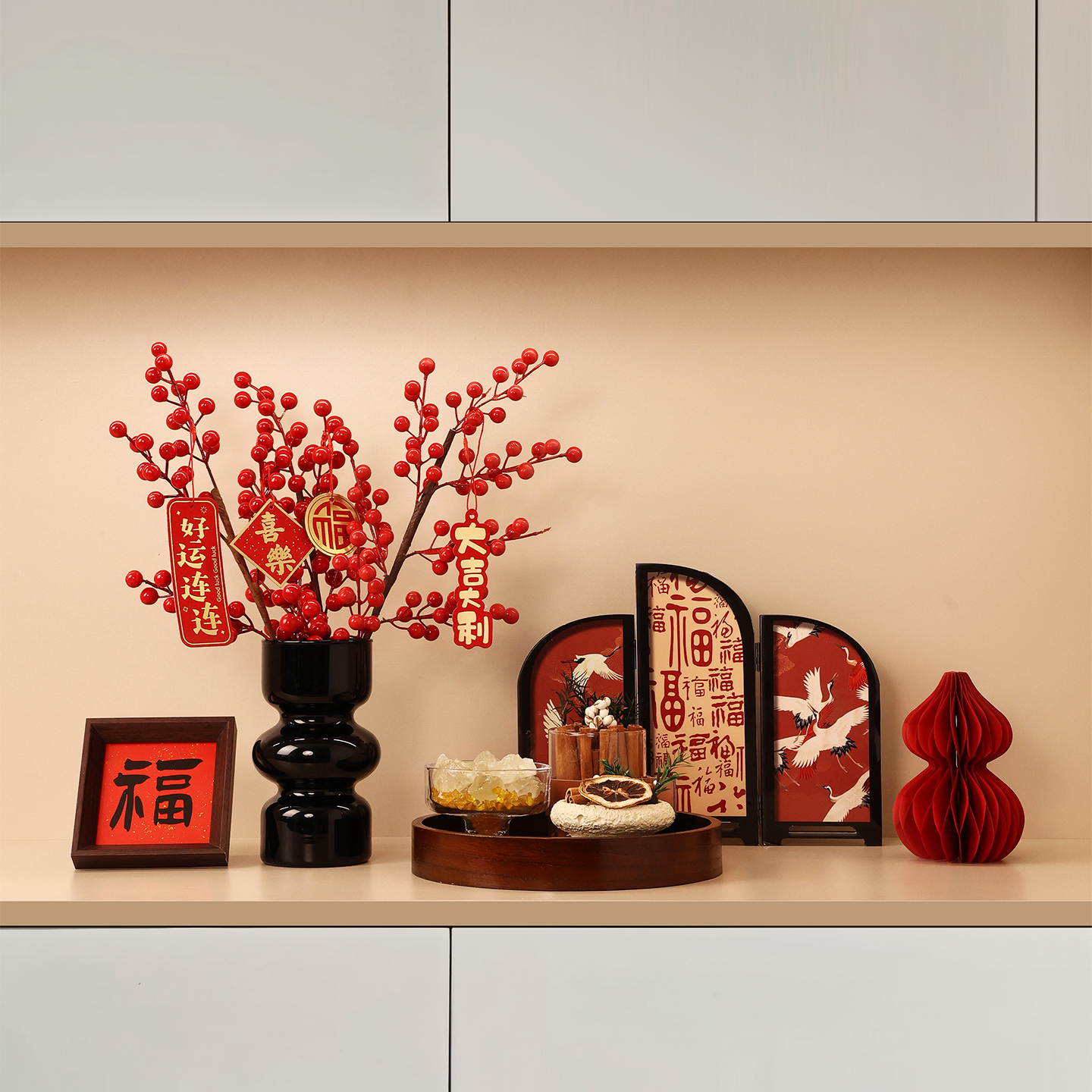 贝汉美中式创意红色福字摆件客厅入户玄关新年氛围布置装饰高级感