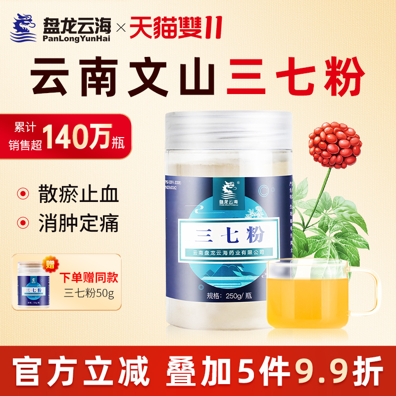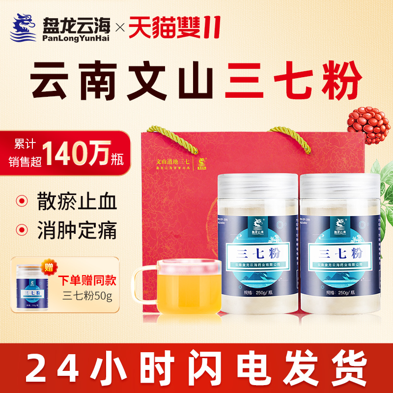 盘龙云海三七粉正品官方旗舰店250g正宗云南文山田七头中药材送礼