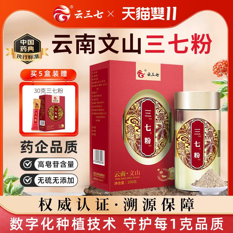 云三七云南文山三七粉100g/瓶中药材道地田七粉官方正品溯源保障