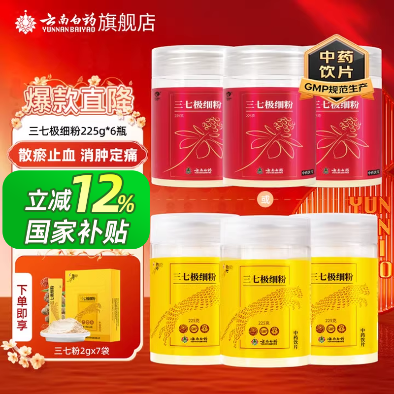 云南白药三七粉正宗云南文山三七头田七中药材打粉正品官方旗舰店