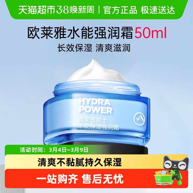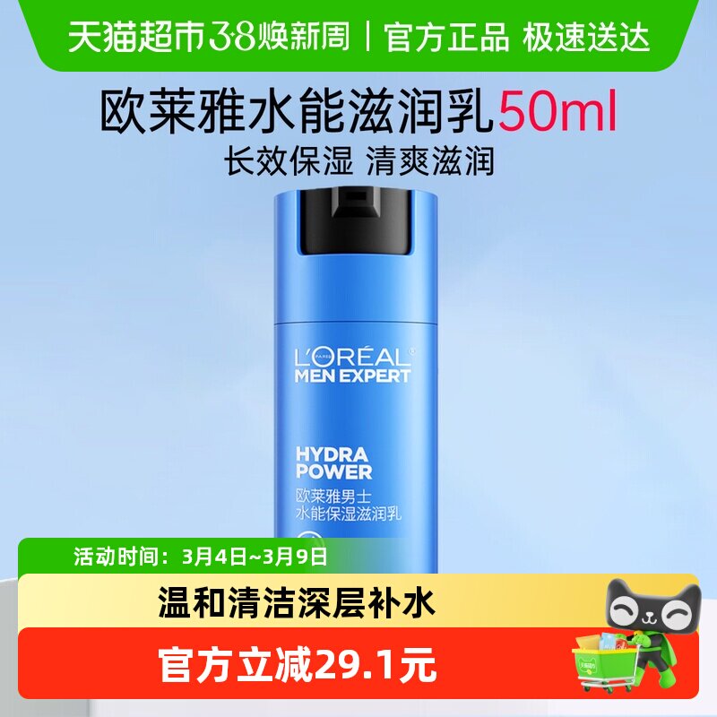 欧莱雅润肤乳液男士水能保湿滋润乳面霜秋冬补水擦脸油脸部50ml