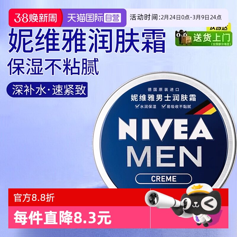 【自营】Nivea/妮维雅男士面霜润肤霜脸部保湿补水小蓝罐擦脸油