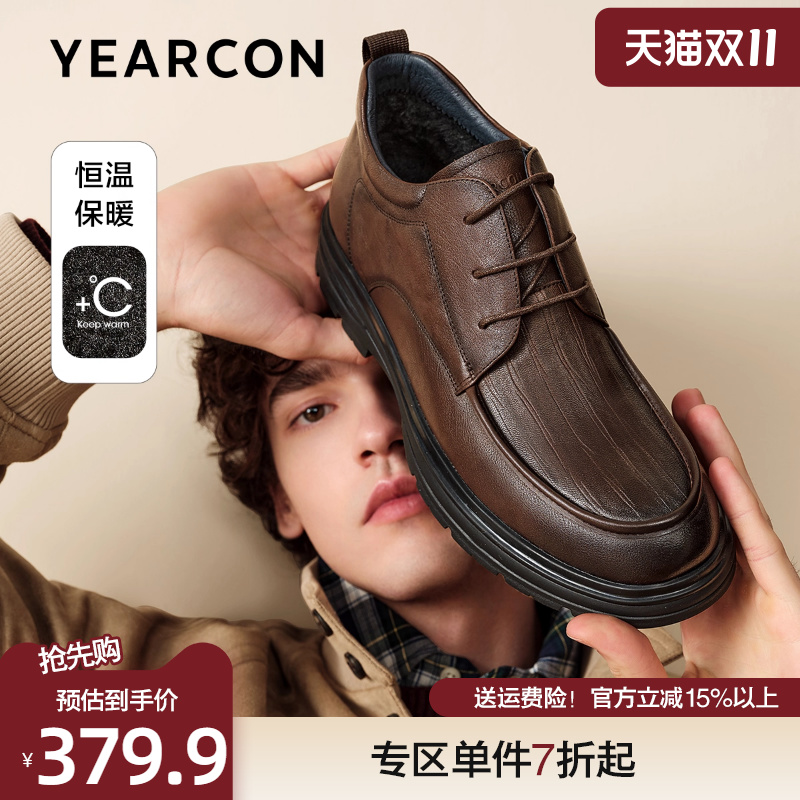 意尔康高帮棉鞋2025冬季新款真皮时尚工装鞋加绒保暖轻便休闲皮鞋