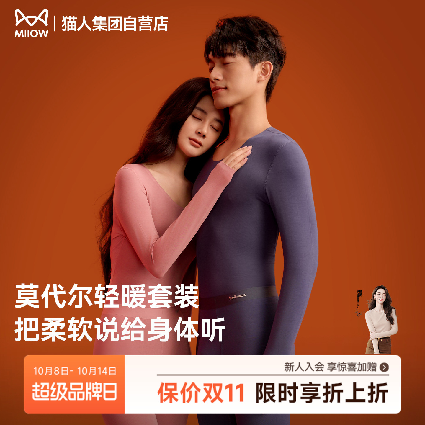 猫人莫代尔保暖内衣套装男女士秋衣秋裤圆领秋冬季2025年新款纯色