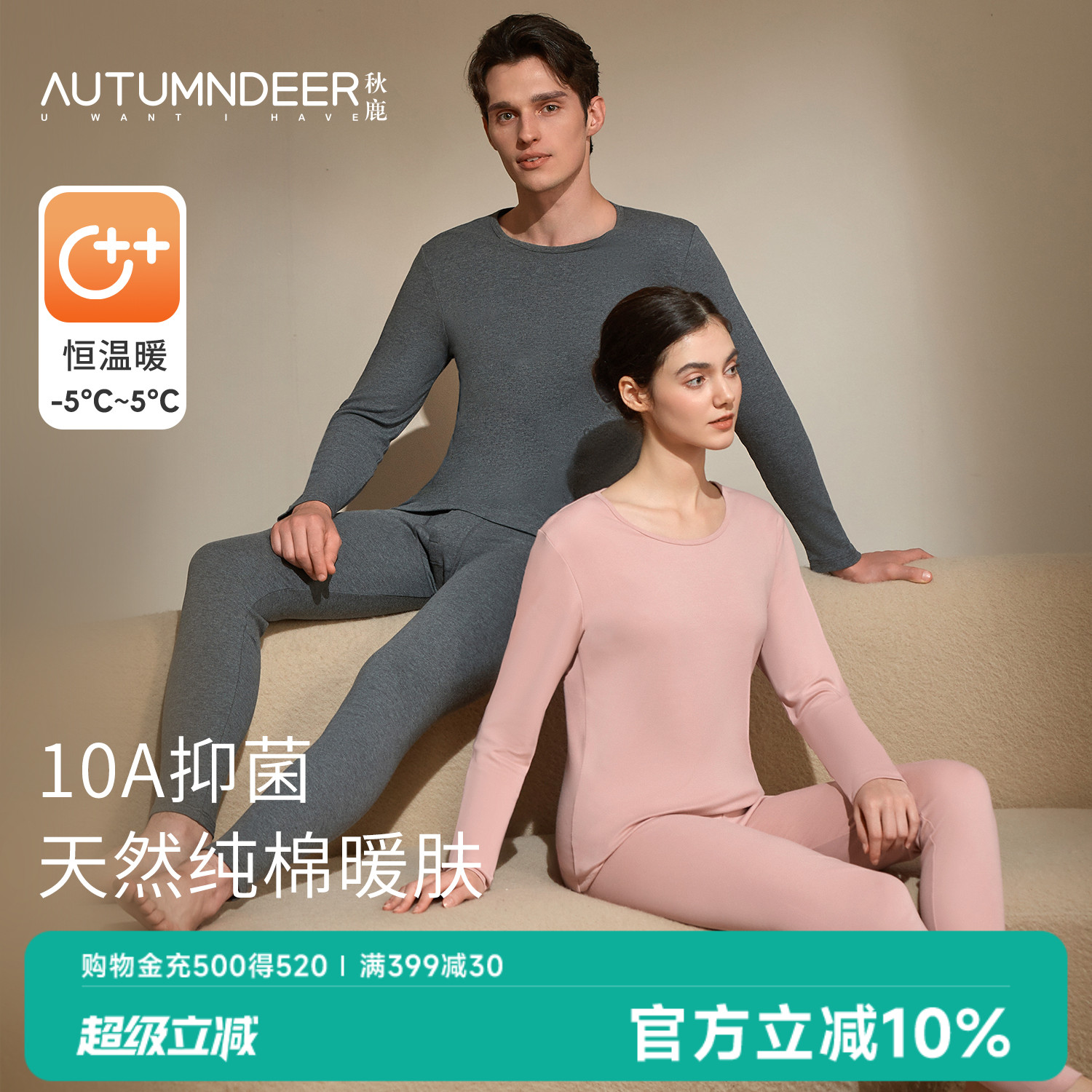 秋鹿10A抗菌保暖内衣女士纯棉圆领25新款抗静电秋衣秋裤男士套装