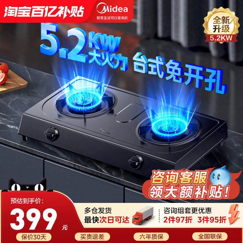 美的燃气灶5.2KW猛火灶双灶煤气灶天然气灶台式家用免开孔安装TX3