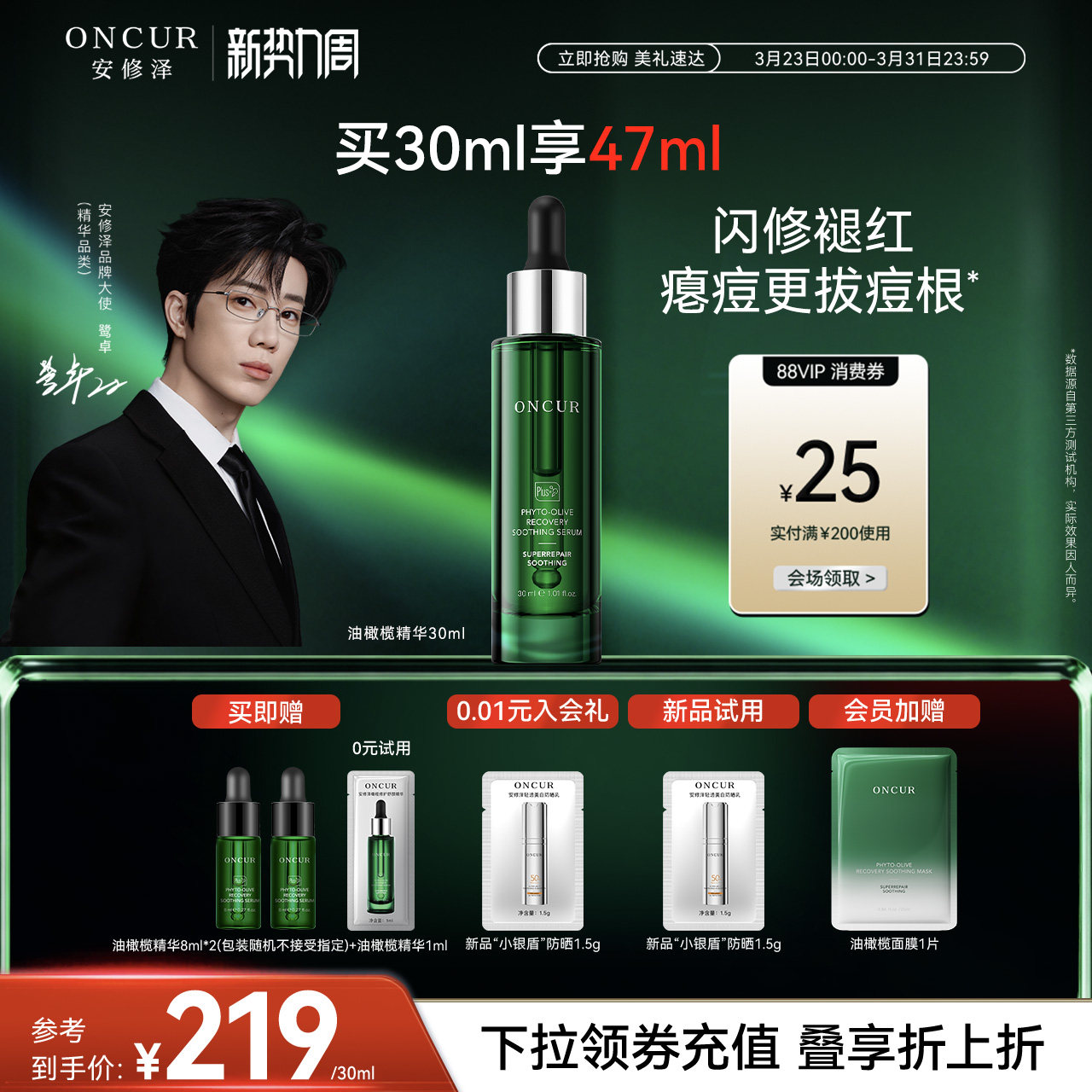 【鹭卓同款】安修泽油橄榄精华液祛痘修红面部精华液保湿舒缓修护