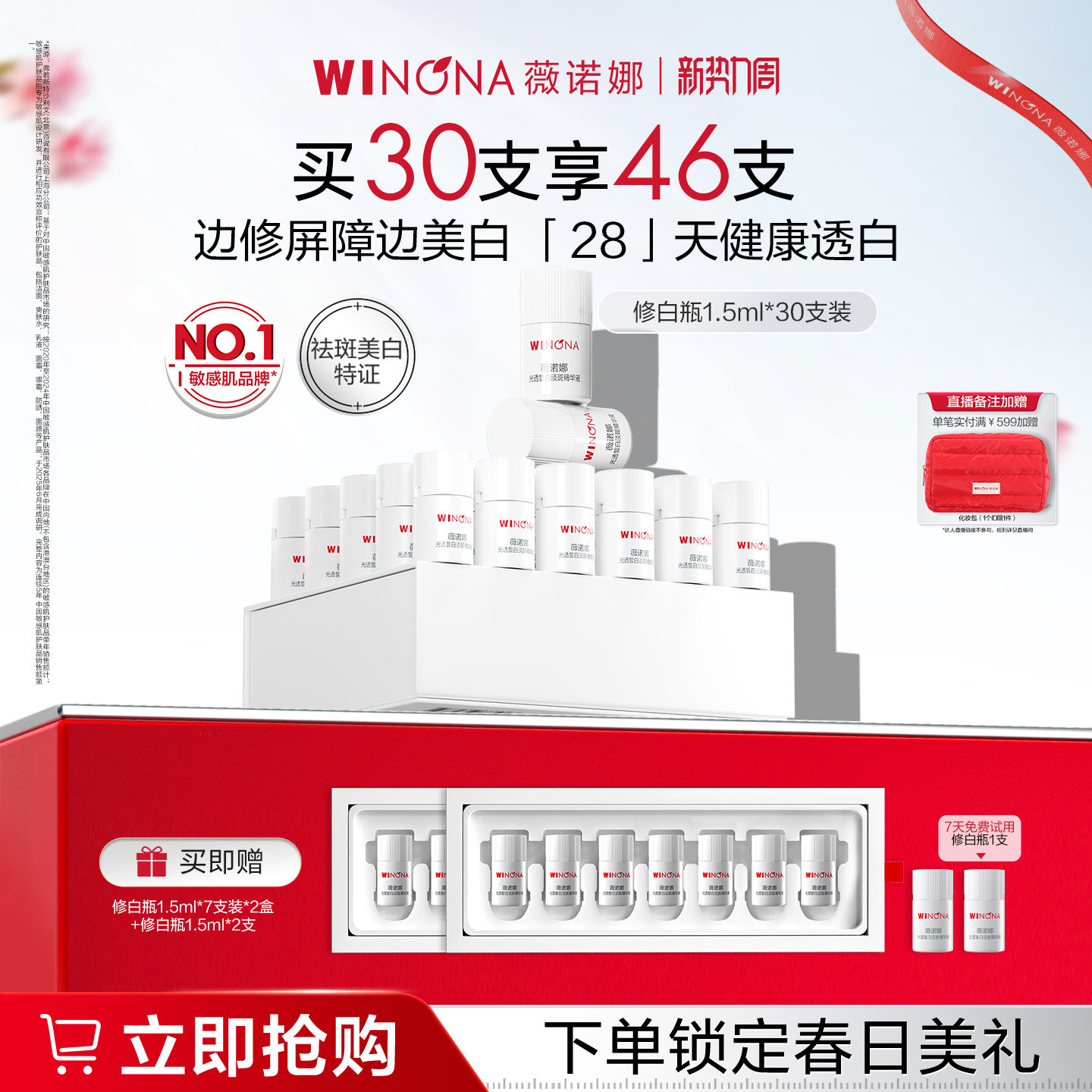 薇诺娜修白瓶光透皙白淡斑液精华美白次抛敏感肌祛斑提亮保湿修护