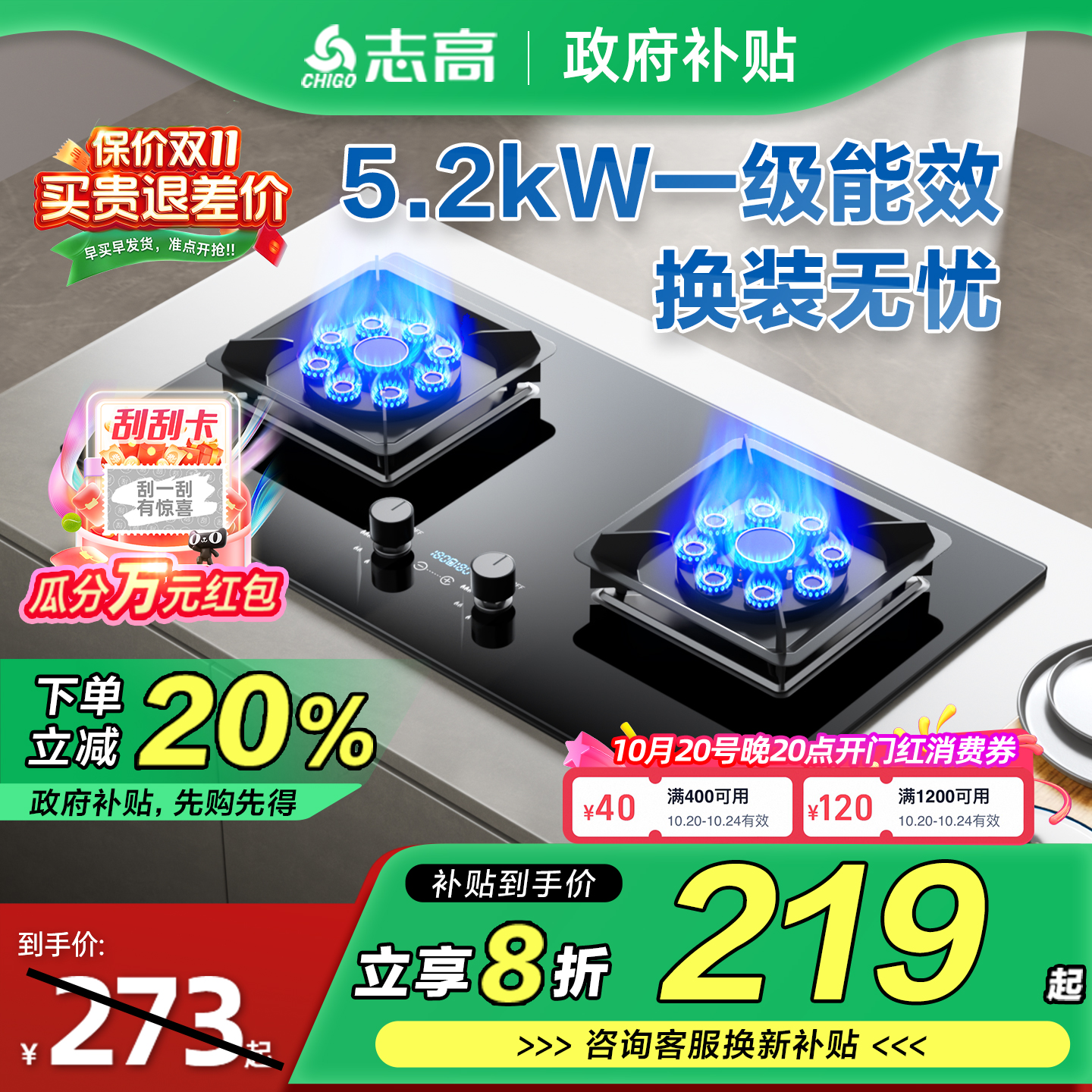 政府补贴志高家用燃气灶双灶天然气翻盖式煤气灶台嵌入式猛火灶具