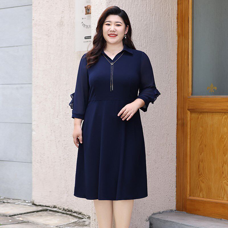 加大码女装春装200斤胖妹妹洋气时尚中长款遮肚子显瘦休闲连衣裙
