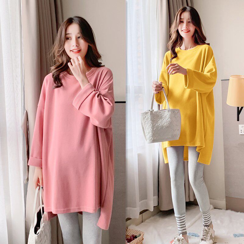 加肥加大码c春装孕妇t恤连衣裙中长款韩版宽松遮肚卫衣裙套装200