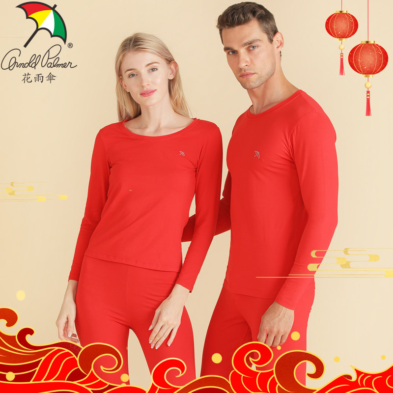 花雨伞本命年秋衣套装男秋衣套装大红色女保暖秋衣秋裤女薄款打底