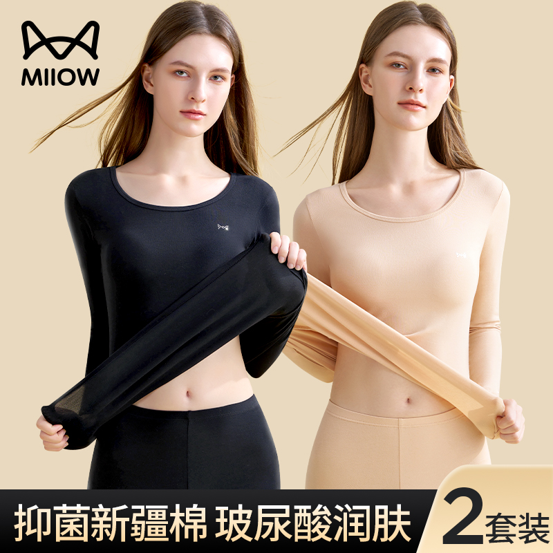猫人秋衣秋裤女薄款修身塑型无痕打底衫2025冬季新款保暖内衣套装