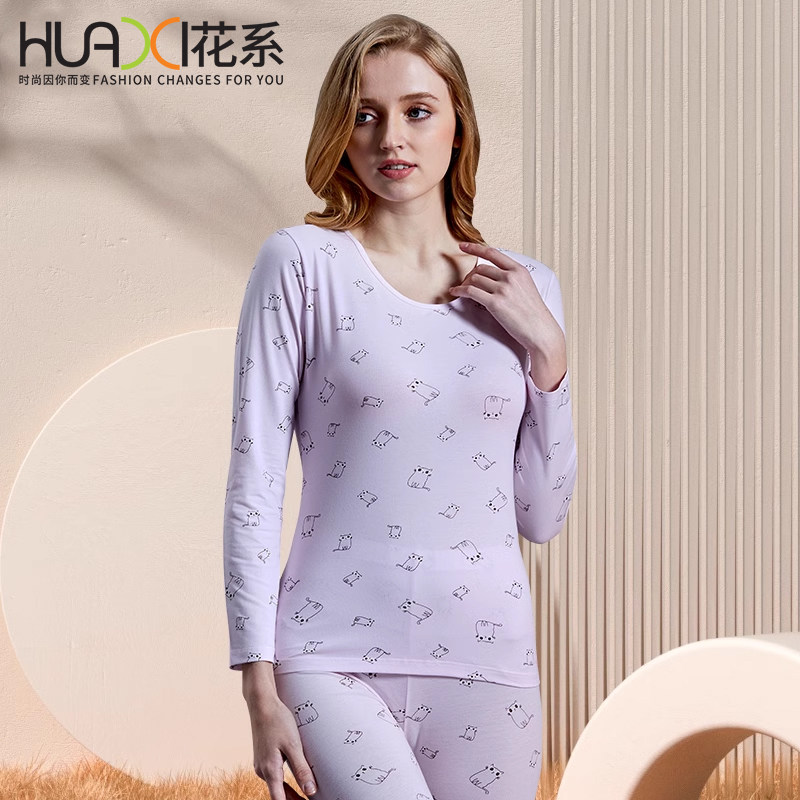 顶呱呱顶瓜瓜秋衣秋裤女薄款纯棉套装性感修身印花保暖内衣女薄款