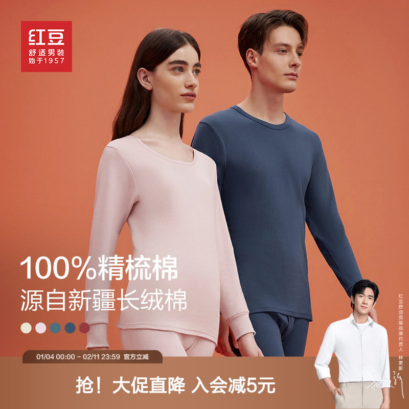 红豆纯棉秋衣秋裤男女士薄款全棉青少年中老年棉毛衫保暖内衣套装