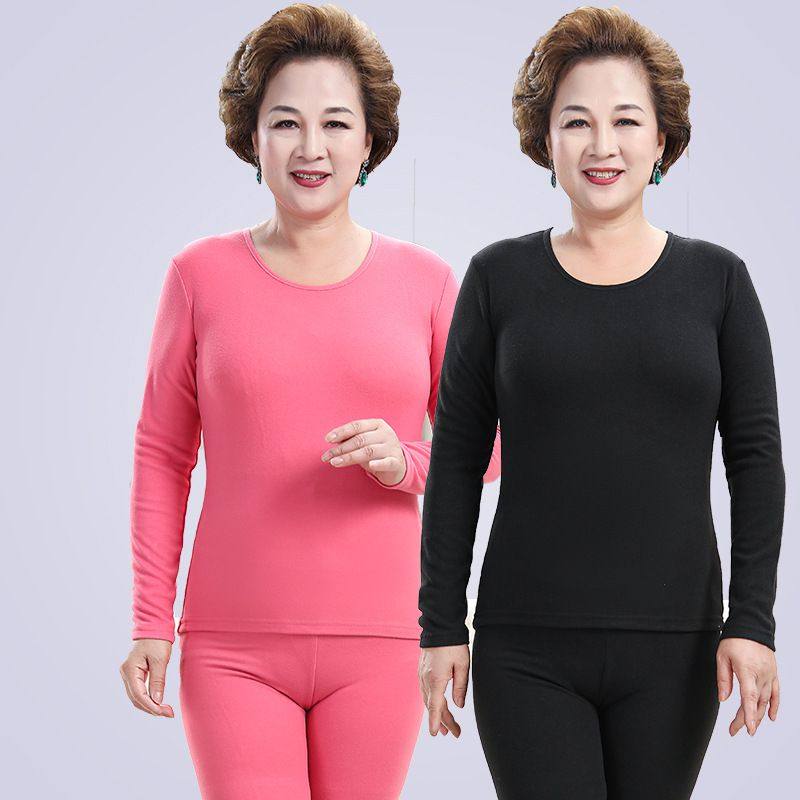 中老年妈妈女士磨绒保暖内衣套装冬季打底老人奶奶秋衣秋裤女薄款