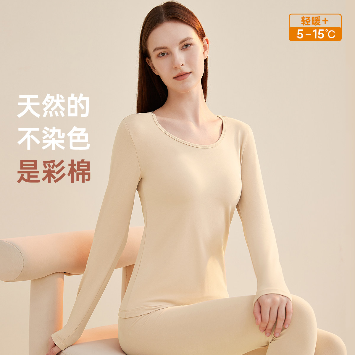 【k姐推荐】天然彩棉秋冬圆领保暖内衣套装秋衣秋裤女薄款纯棉zb