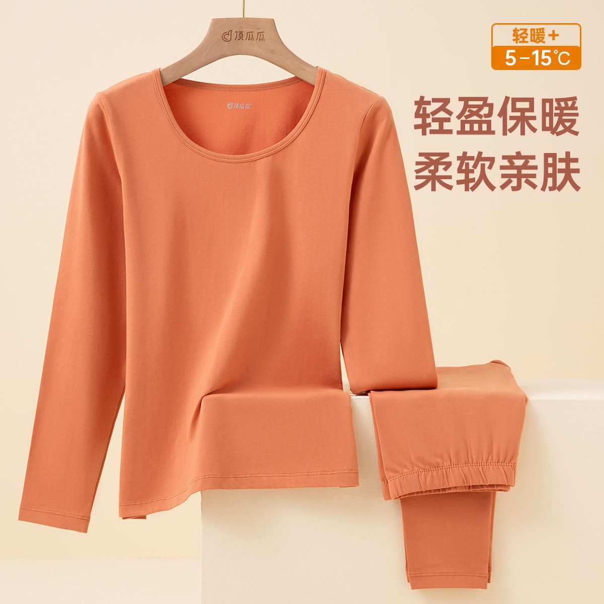 顶瓜瓜秋衣秋裤女薄款棉毛衫纯色简约圆领舒适莱卡棉保暖内衣套装